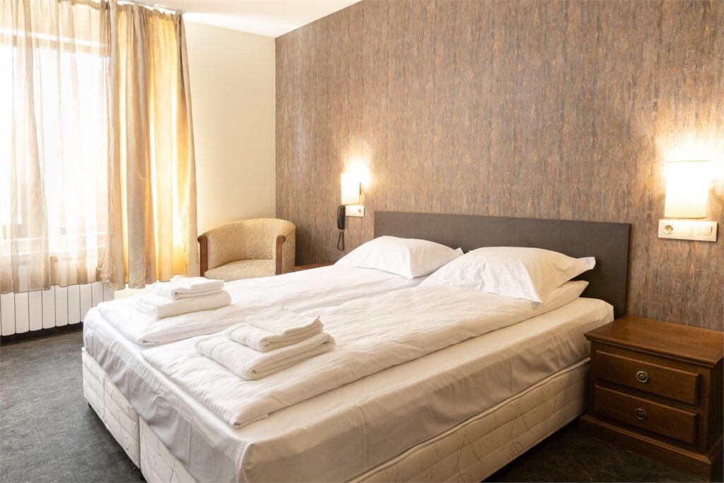 Всяка стая е елегантно декорирана с модерна естетика и оборудвана с най-високо ниво удобства, за да се осигури релаксиращ и приятен престой.